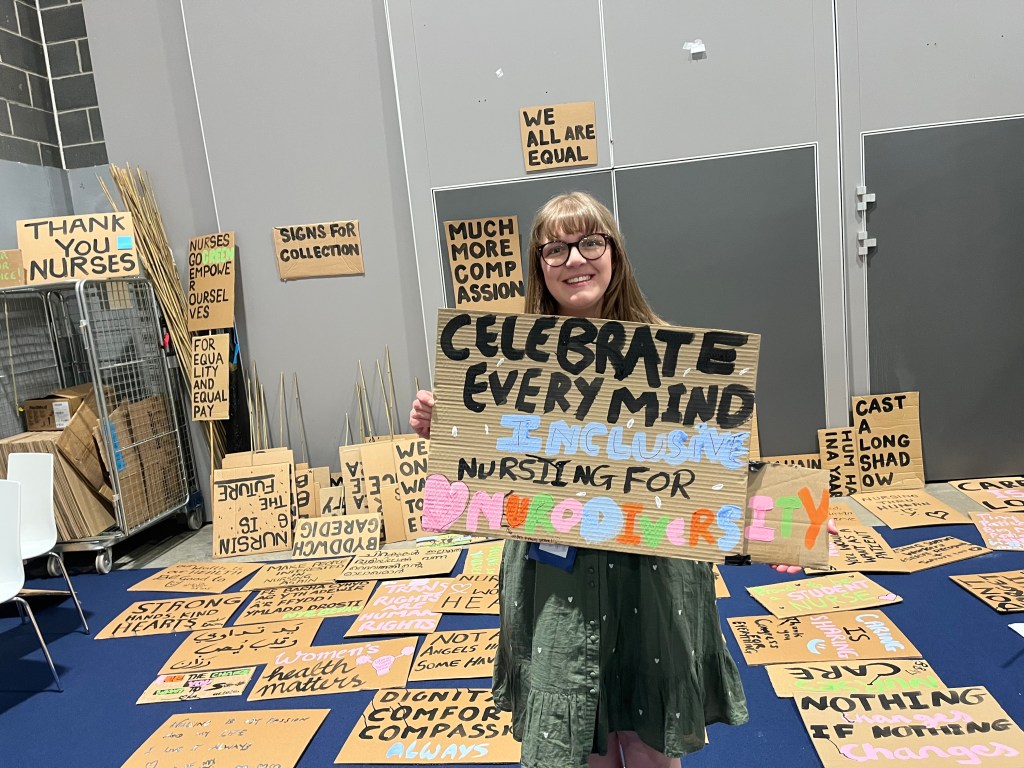 I think nurses need to understand what it can be like to live in a neurodivergent nurses’ shoes and recognise that everyone has their own way of learning and working. Providing that individuals can do their job safely they should not be judged for their own way of working and learning. For me my neurodivergences can make it difficult for me to spell or pronounce really complex medical words. Sometimes it can be challenging to retain information, however I have my strategies to counteract this (good old note book and pen). I use colours and patterns to remember and learn certain tasks like documentation or calculations. I use my calculator to check my drug calculations and triple check everything before administrating to make sure it is safe. I may need instructions or new information repeated more than once in order to process it properly. I might find some lights, noises, and smells overly powerful for my senses, but I still manage to zone them out to do my job well. I find that my ADHD/OCD drives the perfectionism in me which is why I have such high standards and I can be really hard on myself if I don’t get things bang on. However my neurodivegence and OCD can also bring the best in me to deliver high quality patient care, and teaching for students. Theatres is a perfect place for someone with OCD prevision so I channle my inner ND in a way that works so well for me.